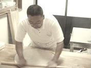 6.伸ばしは、引き伸ばすのではなく、麺棒を上から押し当てるようにのします。